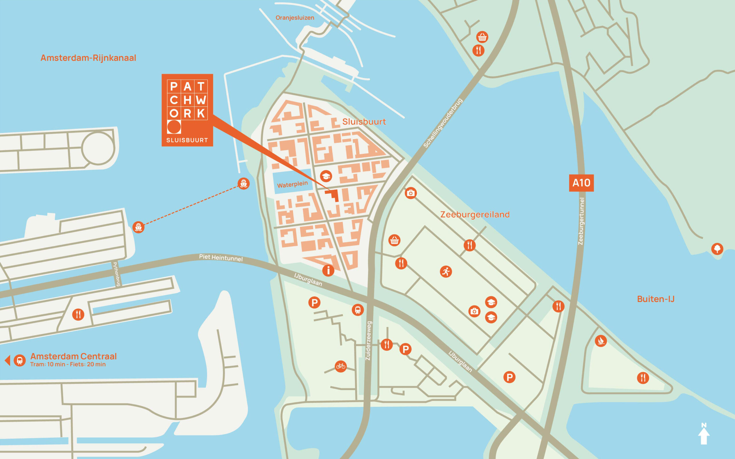 Noem het gerust best of both worlds, de Sluisbuurt op het Zeeburgereiland . Je hebt er alle faciliteiten van Amsterdam op fietsafstand, want: gelegen binnen de ring. En tegelijk ervaar je het als een ander stukje stad. Rustiger, groener, overzichtelijker. Met de A10 om de hoek is heel Nederland met de auto binnen bereik. Het openbaar vervoer komt trouwens langs om de hoek. Al hoef je door de vele voorzieningen op het Zeeburgereiland nooit ver weg.